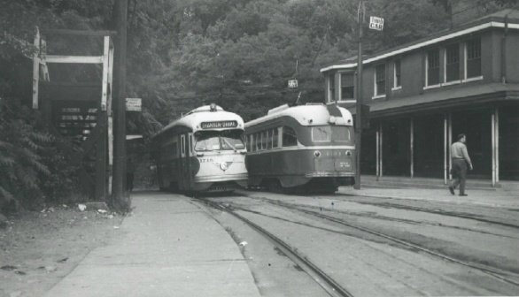 You can see how the top roof overhang was cut back by the time this photo was taken in 1956. This was the first step in destroying the character of the building.