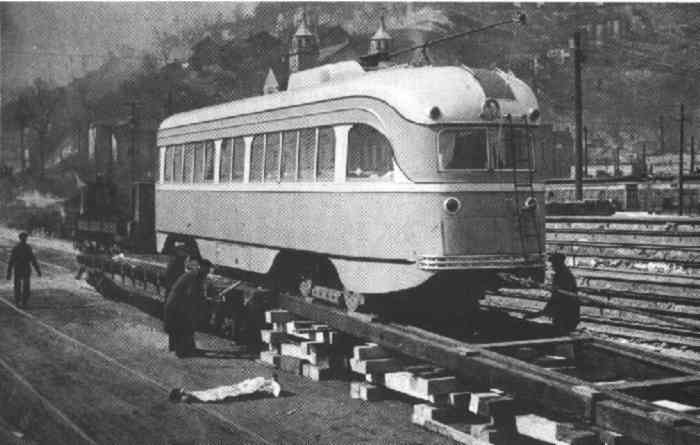 1225 at Kenneywood Park with experimental trucks, September 1, 1941