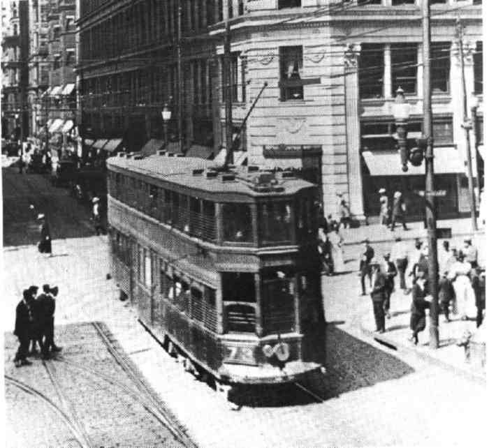 6005 makes its way past Gimbels at Sixth and Smithfield.