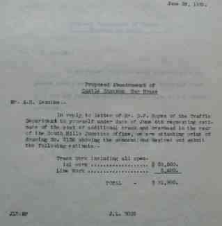 Apologies for the poor quality of this scan. It is dated June 1930 and is titled "Proposed Abandonment of Castle Shannon Car House". It goes on to show the cost of installing a loop around South Hills Junction Administration Building.