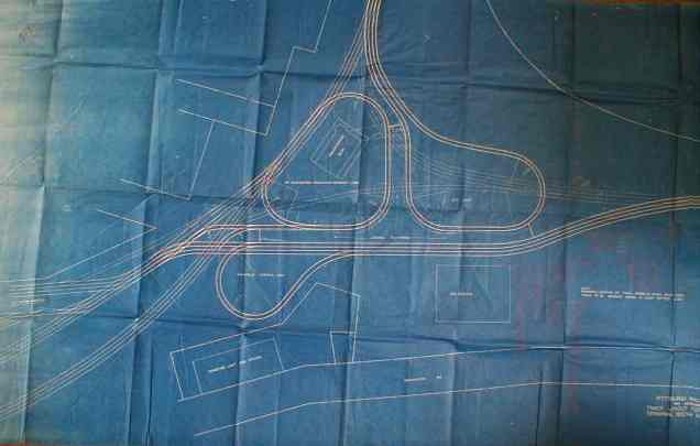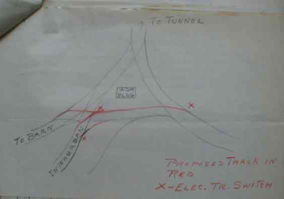 These first two images I took with my digital camera. These are not module plans, they actually came from the PRCo archives. I don't know what would be gained by making a complete loop around the building. Cars coming out of the tunnel or from Knoxville could be turned around without going through the shop area. I suppose that is why it was never built.