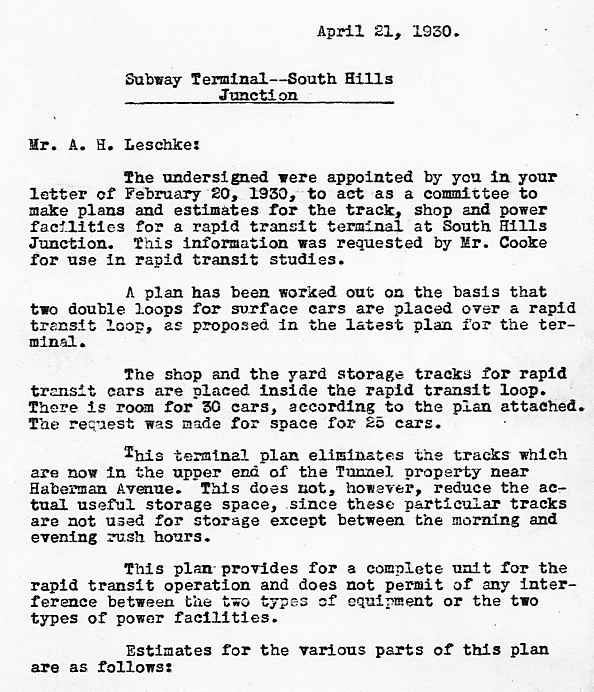 Apparently some real consideration was given to a "Rapid Transit" system in Pittsburgh as this 1930 letter and plan testify.