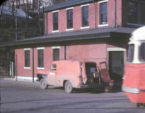 Every Friday at 4 PM M-1, the Pay Car, would pull onto this diagonal track at the rear of the junction building having come down the hollow from Warrington Ave. to mete out the conductors pay checks. It was a dark brown, wood-sided, car with wire mesh over all side windows, and with a four-wheel central truck which made the car rock up and down. I'll have to find a picture of M1