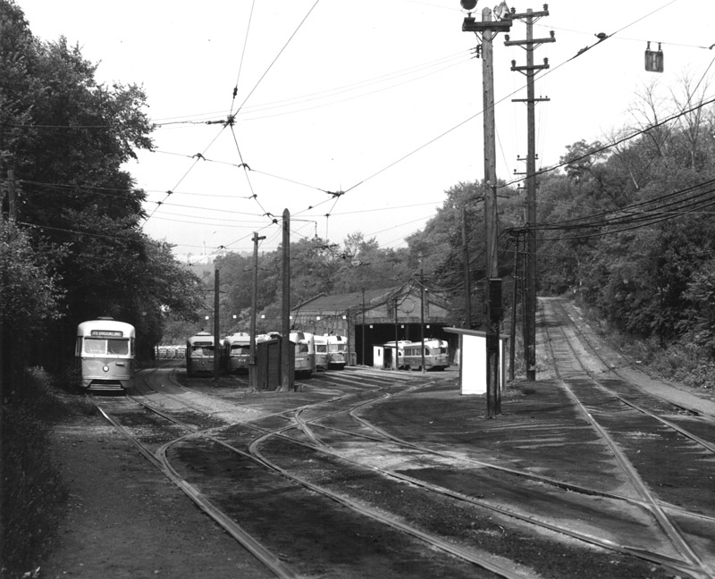 A PAT painted PCC from Brookline makes its was up the ravine past a litany of PCCs, many still sporting PRCo livery.